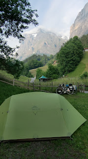 Our last night in France we slept in a farmers field close to the Switzerland border, forcing us on the road by 7am. We entered Switzerland via Geneva, a beautiful city with a fountain that sprays directly up out of the lake at least 300 feet. Wow! Although it took us quite a bit of time to orient ourselves and find the information center, we did actually manage by means of a street map and using the fountain as a frame of reference. Considering how high the water goes up, you can see the fountain from almost anywhere. A few hours later, yes hours, we found the middle of downtown. At times it is definitely frustrating when you are riding in circles, hungry and confused. I have always heard that Switzerland is expensive, boy those people weren't lying! First off, the franc dollars look fake, bigger in size and the colors are pretty fantastic. Secondly, it requires a lot of it to travel through the beautiful country. After a few weeks of perfectly cleaned streets, houses and lawns, spotless garbage cans, bike paths galore, we saw where the taxes are spent. A simple lunch of basic sandwiches cost 18 francs and campgrounds close to 40. Now that was something to get used to. But worth every penny.